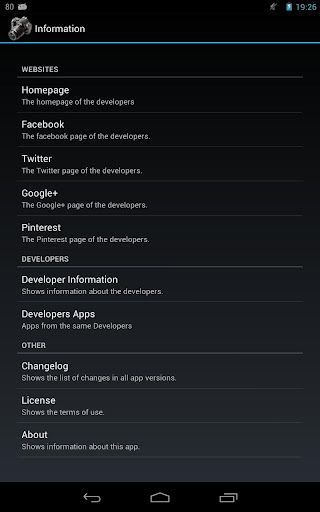 3. Camera Nexus 7 (official). Судячи з назви, офіційний додаток для запуску камери в Nexus 7 (Гм, чому ж тоді не можна було його додати в прошивку?...:-)). Офіційний він, чи ні, але дозволяє запускати фронтальну камеру на всіх Android пристроях, починаючи з 2.3.3 версії і вище. Попередня ж програма працює тільки з Android 4.1. Скріншоти програми (натисніть, щоб збільшити):